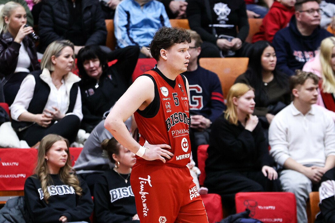 Tomas Pihlajamäki pussitti 16 pistettä Bisonsin 57 pisteen voitossa. Kuva: Eerika Kivinen